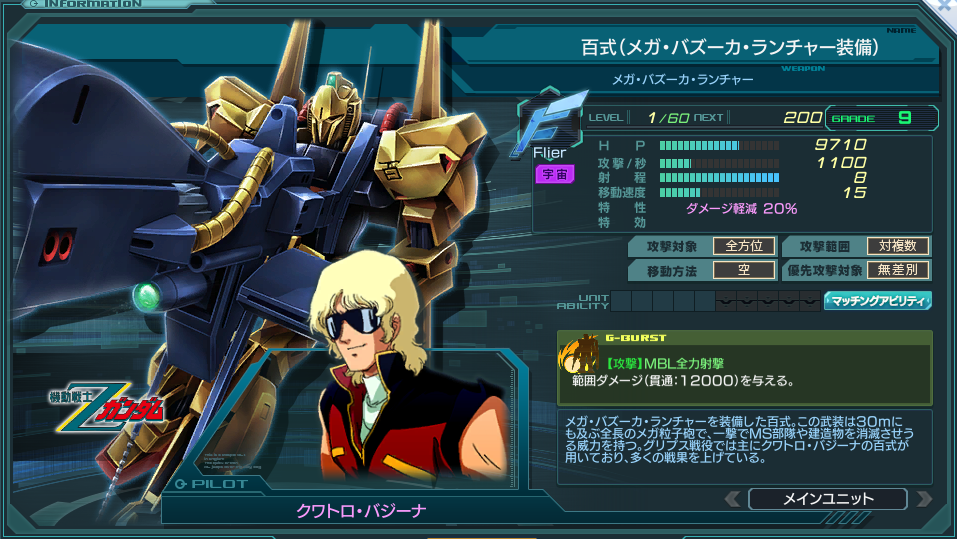![]() | 名称 | 百式(メガ・バズーカ・ランチャー装備) | ||