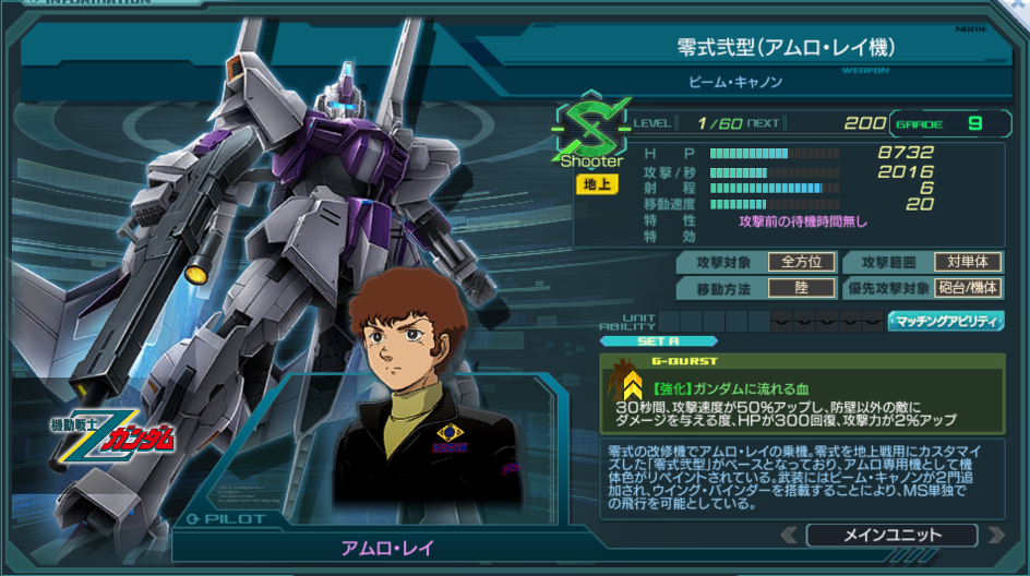 一覧 量産機 | エース | MA 最終ステータス 量産機 | エース | MA 比較データ エースGバースト | シリーズ別早見表 | 特性早見表| MS索引 赤字はレベルアップによるMAX値 基本ステータス
