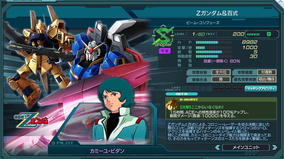 | エース機 | 登場作品 | 機動戦士Zガンダム | ||