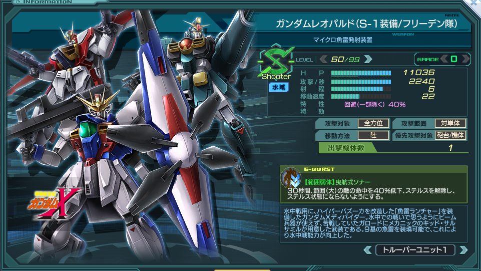 ・ガンダムXディバインダー(フリーデン隊) Lv60/G10