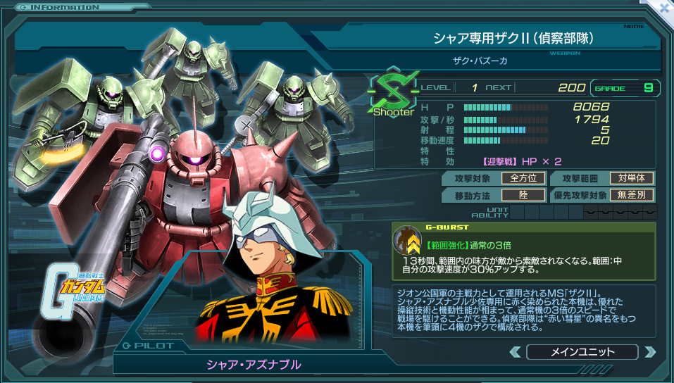 一覧 量産機 | エース | MA 最終ステータス 量産機 | エース | MA 比較データ エースGバースト | シリーズ別早見表 | 特性早見表| MS索引