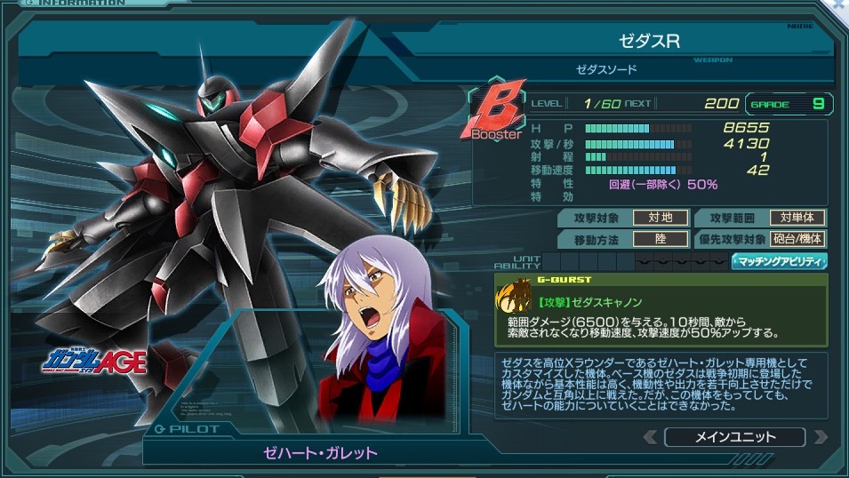 | Booster | 特性 | 回避(一部除く)50%、砲台×2 回避成功時Gバースト効果時間10%延長(蓄積可) | ||