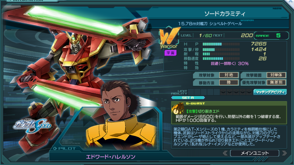 一覧 量産機 | エース | MA 最終ステータス 量産機 | エース | MA 比較データ エースGバースト | シリーズ別早見表 | 特性早見表| MS索引 赤字はレベルアップによるMAX値 基本ステータス
