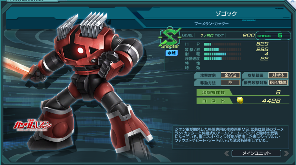 一覧 量産機 | エース | MA 最終ステータス 量産機 | エース | MA 比較データ エースGバースト | シリーズ別早見表 | 特性早見表| MS索引 赤字はレベルアップによるMAX値 基本ステータス