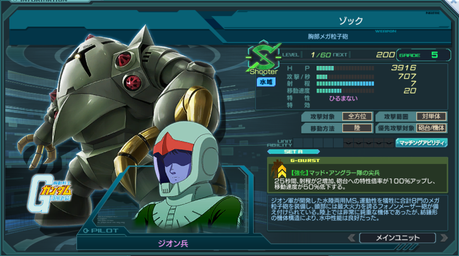 | ユニット専用アビリティ | 水陸両用重MS | ||