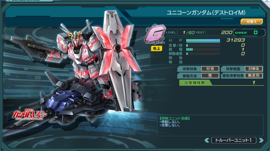 | 特殊ユニット効果 | ・移動しない・攻撃しない ・独立したユニットとして行動する。 ・メインユニットが破壊されても、破壊されない。 | |||