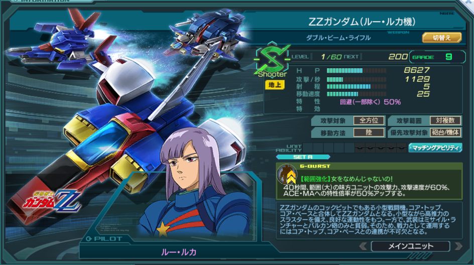 一覧 量産機 | エース | MA 最終ステータス 量産機 | エース | MA 比較データ エースGバースト | シリーズ別早見表 | 特性早見表| MS索引 赤字はレベルアップによるMAX値 基本ステータス