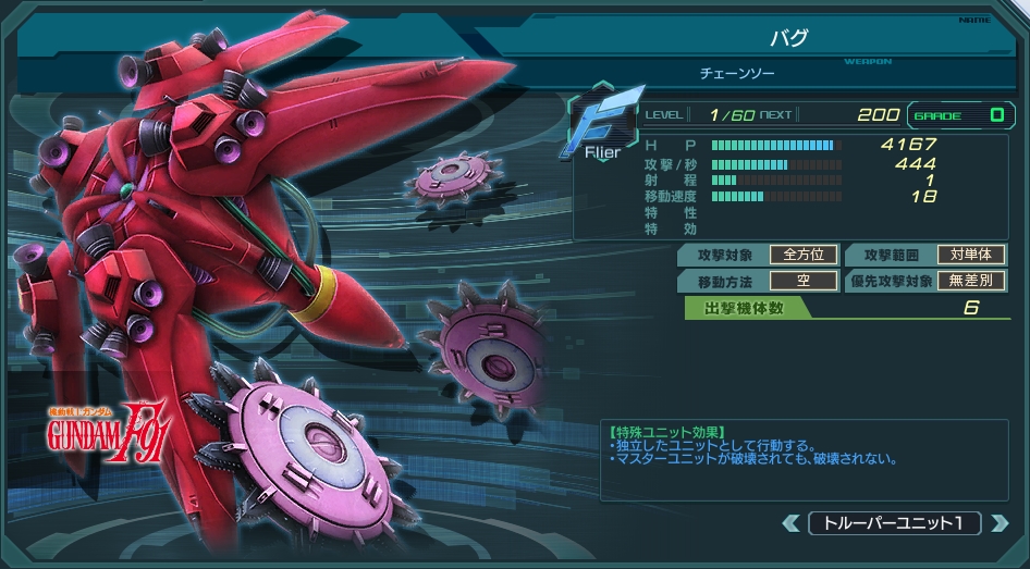 | 特殊ユニット効果 | ・独立したユニットとして行動する。 ・マスターユニットが破壊されても、破壊されない。 | |||