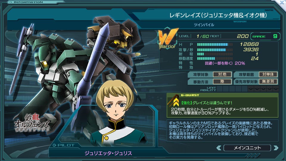 | Warrior | 特性 | 回避(一部を除く) 20%。トルーパー死亡時:エース・MA×1.5、 回避+30%、移動速度+30%、優先対象:砲台/機体 | ||