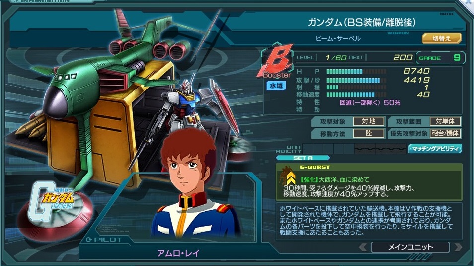 ![]() | 名称 | ガンダム(BS装備/離脱後) | ||