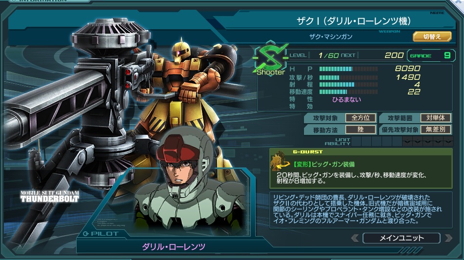 ![]() | 名称 | ザクⅠ(ダリル・ローレンツ機) | ||