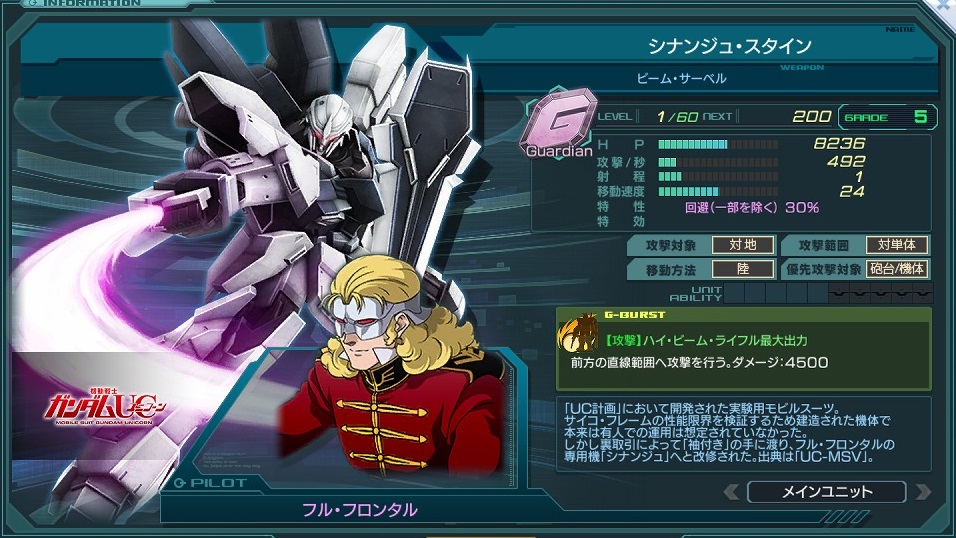 特別任務「再来、赤い彗星」:ステージ10クリア報酬