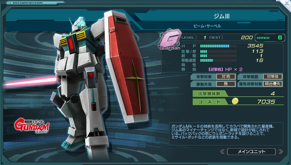 ジムを近代化改修して生まれたMS・ジムIIに、さらなる近代化改修を施したものである。