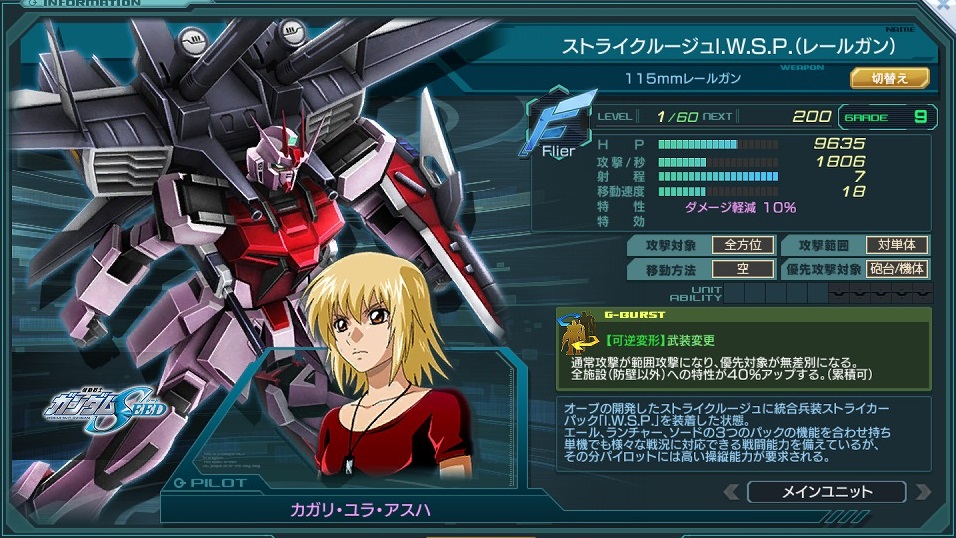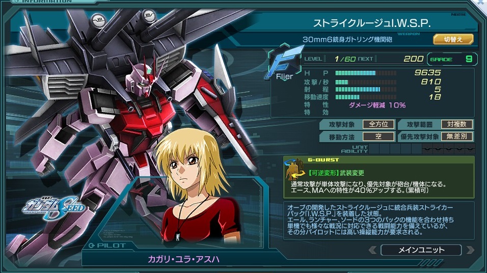 一覧 量産機 | エース | MA 最終ステータス 量産機 | エース | MA 比較データ エースGバースト | シリーズ別早見表 | 特性早見表| MS索引 赤字はレベルアップによるMAX値 基本ステータス