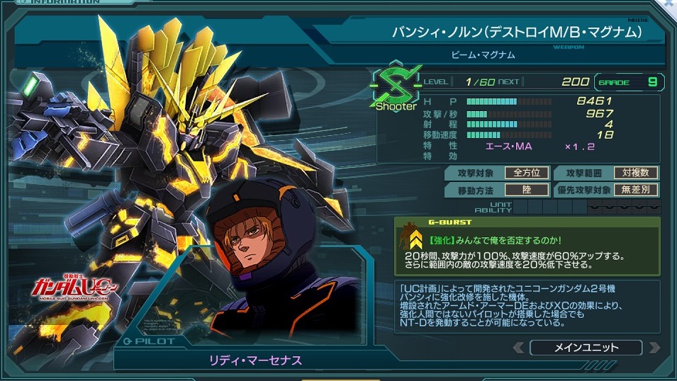 一覧 量産機 | エース | MA 最終ステータス 量産機 | エース | MA 比較データ エースGバースト | シリーズ別早見表 | 特性早見表| MS索引 赤字はレベルアップによるMAX値 基本ステータス