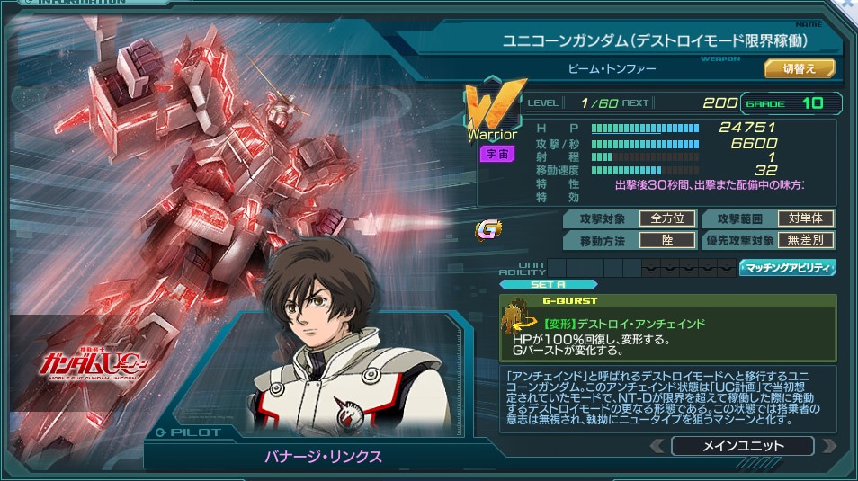 ![]() | 名称 | ユニコーンガンダム(デストロイモード限界稼働) | ||