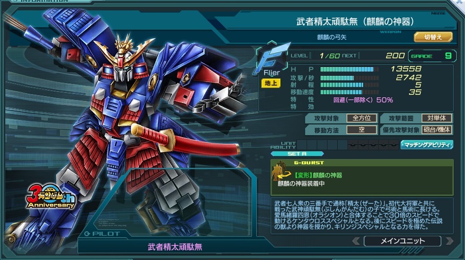 | エース機 | 登場作品 | SDガンダム 30th Anniversary | ||