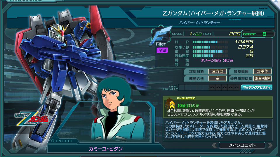 一覧 量産機 | エース | MA 最終ステータス 量産機 | エース | MA 比較データ エースGバースト | シリーズ別早見表 | 特性早見表| MS索引 赤字はレベルアップによるMAX値 基本ステータス
