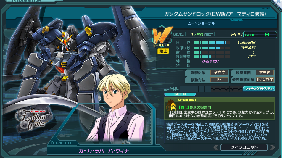 ![]() | 名称 | ガンダムサンドロック(EW版/アーマディロ装備) | ||