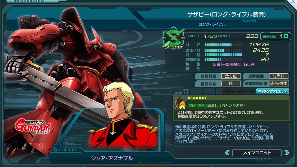 一覧 量産機 | エース | MA 最終ステータス 量産機 | エース | MA 比較データ エースGバースト | シリーズ別早見表 | 特性早見表| MS索引 赤字はレベルアップによるMAX値 基本ステータス