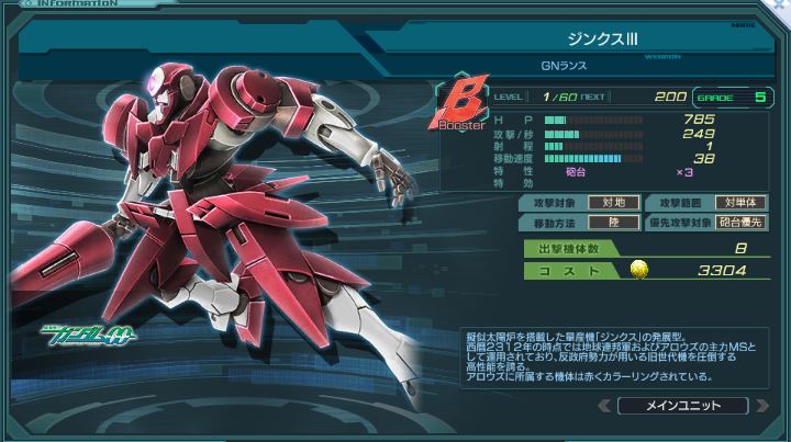 一覧 量産機 | エース | MA 最終ステータス 量産機 | エース | MA 比較データ エースGバースト | シリーズ別早見表 | 特性早見表| MS索引 赤字はレベルアップによるMAX値 基本ステータス