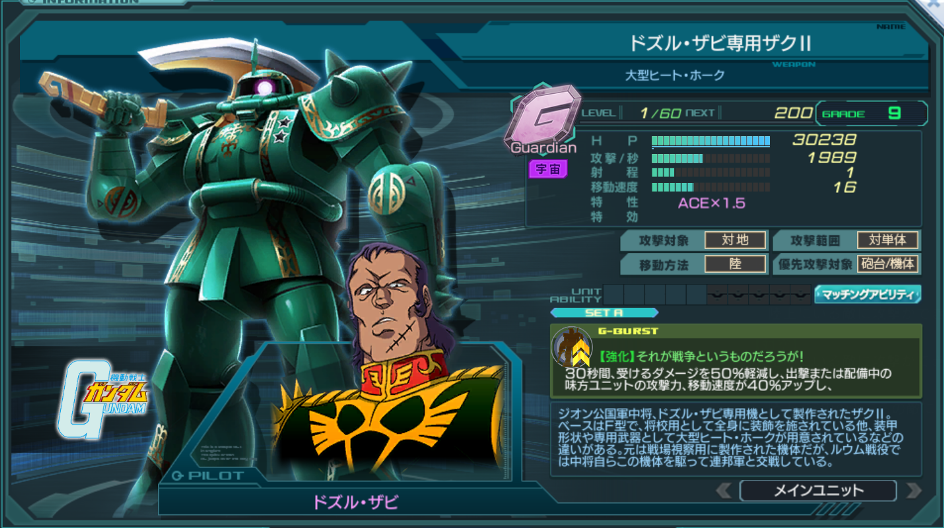 一覧 量産機 | エース | MA 最終ステータス 量産機 | エース | MA 比較データ エースGバースト | シリーズ別早見表 | 特性早見表| MS索引 赤字はレベルアップによるMAX値 基本ステータス