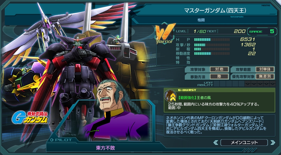 | エース機 | 登場作品 | 機動武闘伝Gガンダム | ||