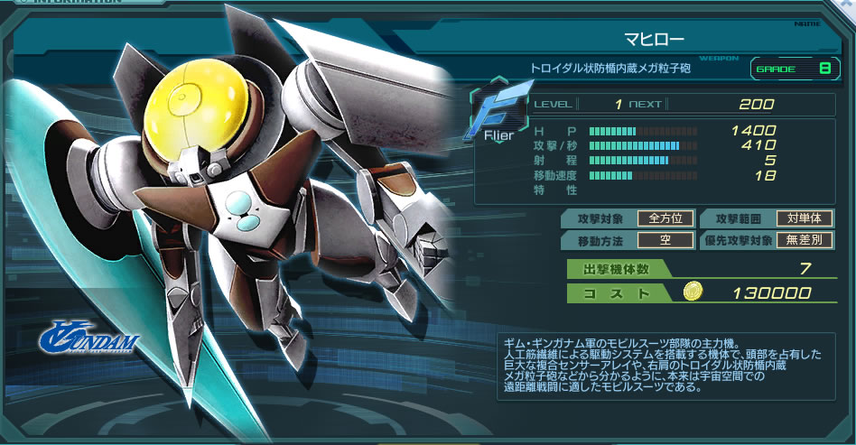 一覧 量産機 | エース | MA 最終ステータス 量産機 | エース | MA 比較データ エースGバースト | シリーズ別早見表 | 特性早見表| MS索引
