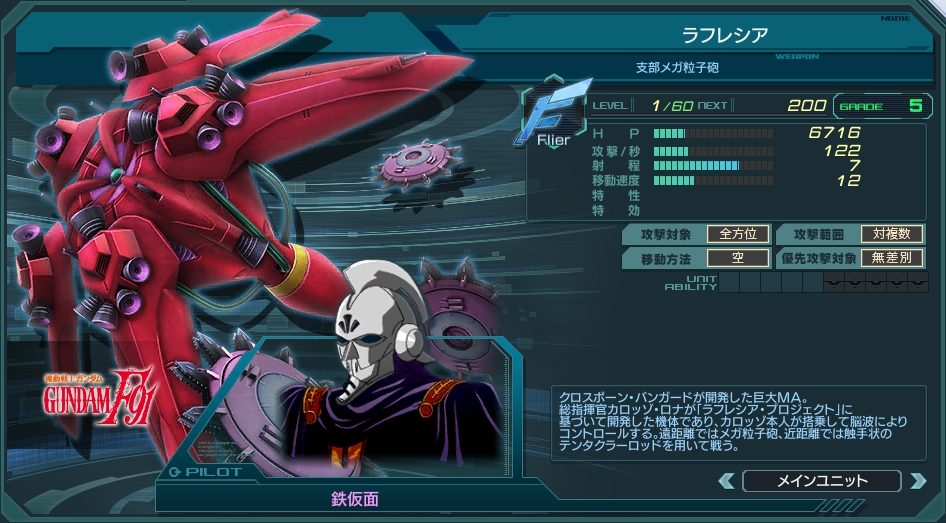 一覧 量産機 | エース | MA 最終ステータス 量産機 | エース | MA 比較データ エースGバースト | シリーズ別早見表 | 特性早見表| MS索引 赤字はレベルアップによるMAX値 基本ステータス
