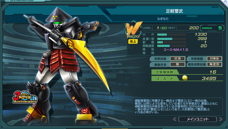 | Warrior | 特性 | エース・MA×1.5 | ||
