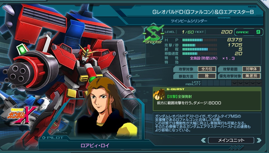 一覧 量産機 | エース | MA 最終ステータス 量産機 | エース | MA 比較データ エースGバースト | シリーズ別早見表 | 特性早見表| MS索引 赤字はレベルアップによるMAX値 基本ステータス