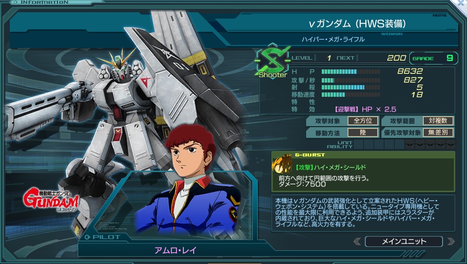一覧 量産機 | エース | MA 最終ステータス 量産機 | エース | MA 比較データ エースGバースト | シリーズ別早見表 | 特性早見表| MS索引