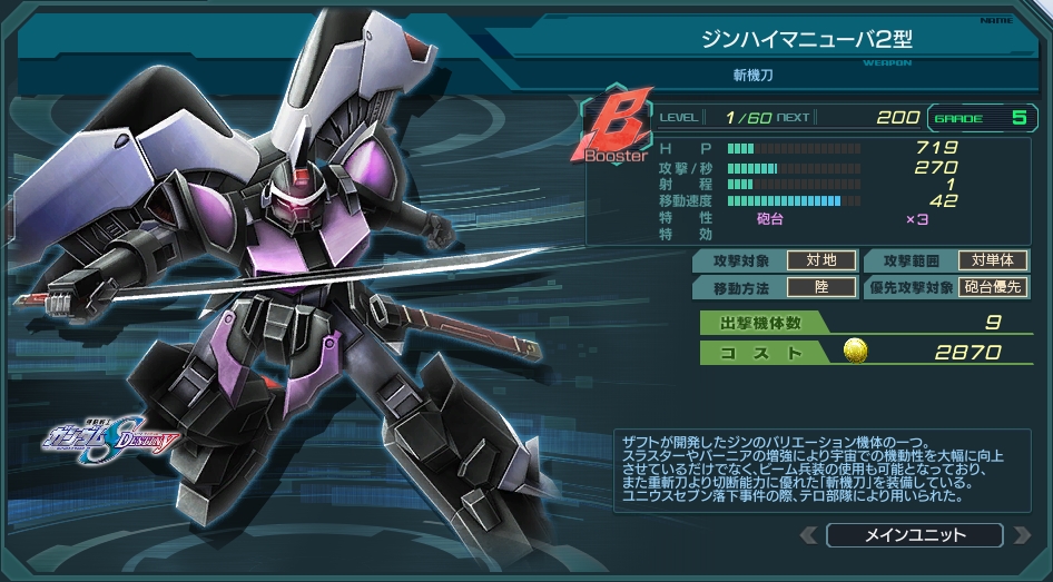 B型の砲台優先としてはガンダムMk-Ⅱ(ティターンズ)と並んで最速となる移動速度42持ち。