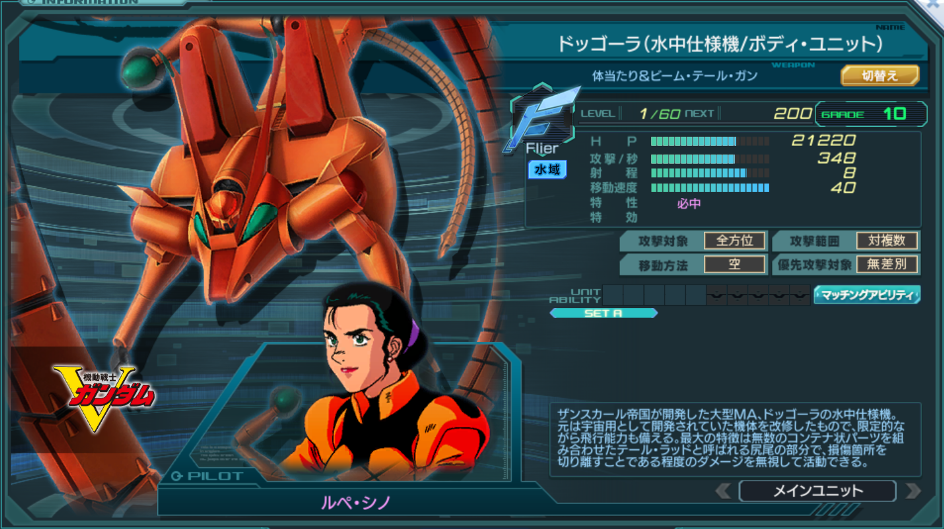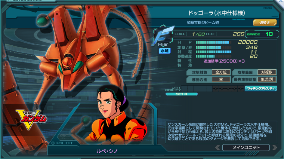 | Flier | 特性 | 追加装甲(25000)×3、必中、Gタイプ×2、Wタイプ×2 | ||