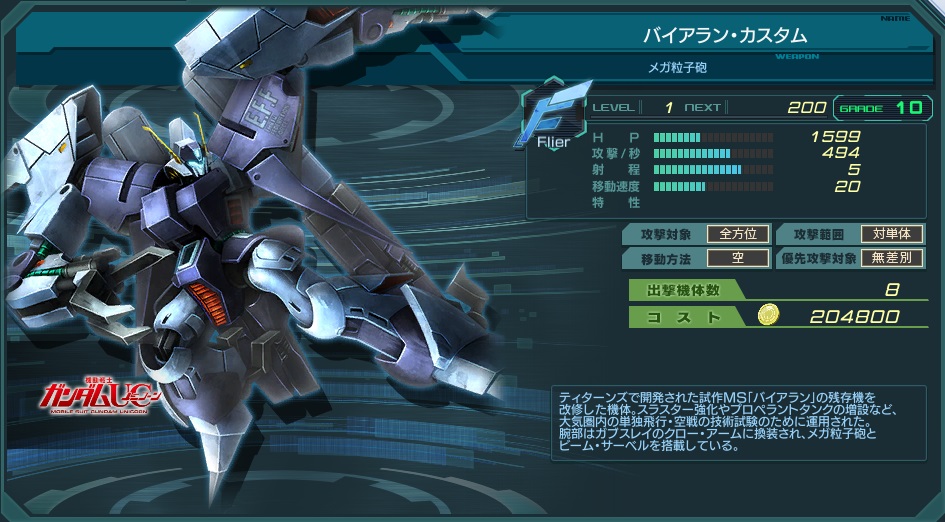 名称からするとバイアランの強化型のように思われるが、射程が+1されたことで貴重な射程5無差別機に進化。