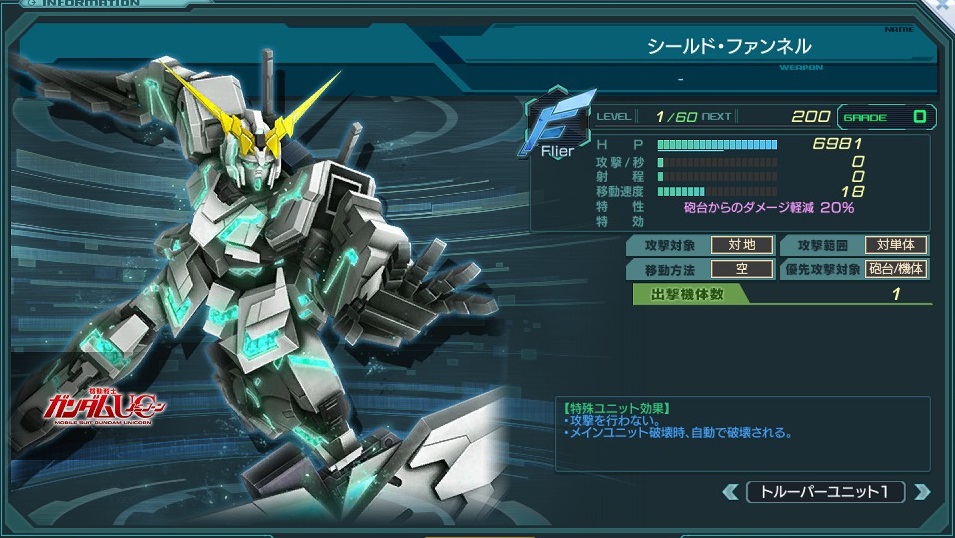 | 特殊ユニット効果 | ・メインユニット破壊時、自動で破壊される。 ・非攻撃ユニット | |||