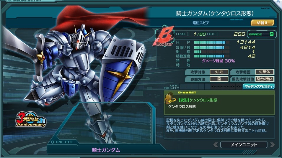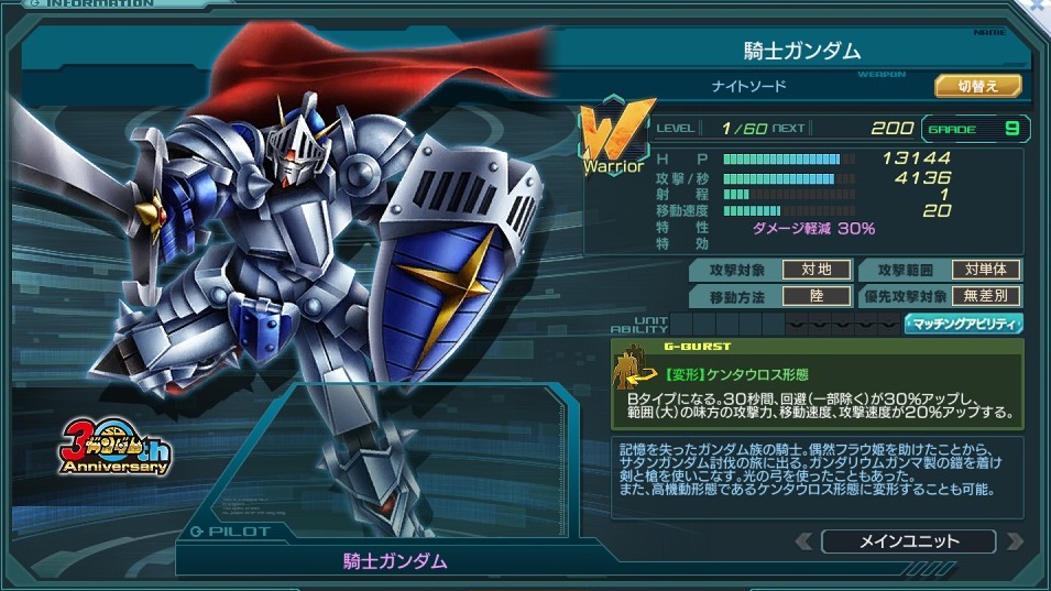| エース機 | 登場作品 | SDガンダム 30th Anniversary | ||