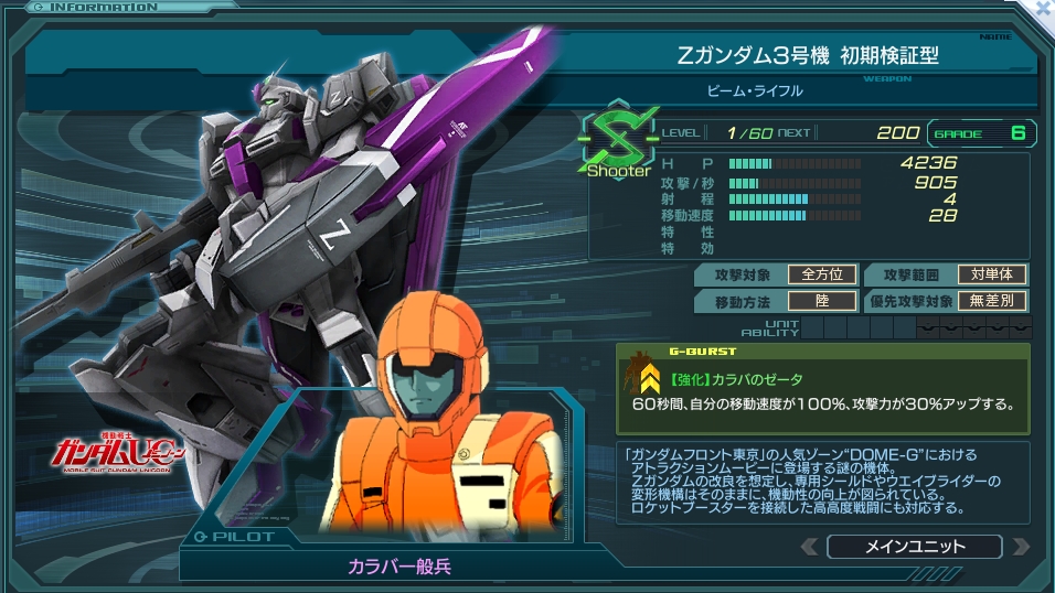 移動速度こそ若干落ちているが、それでもS型としてはかなり速いのでZガンダムと同じ運用ができる。